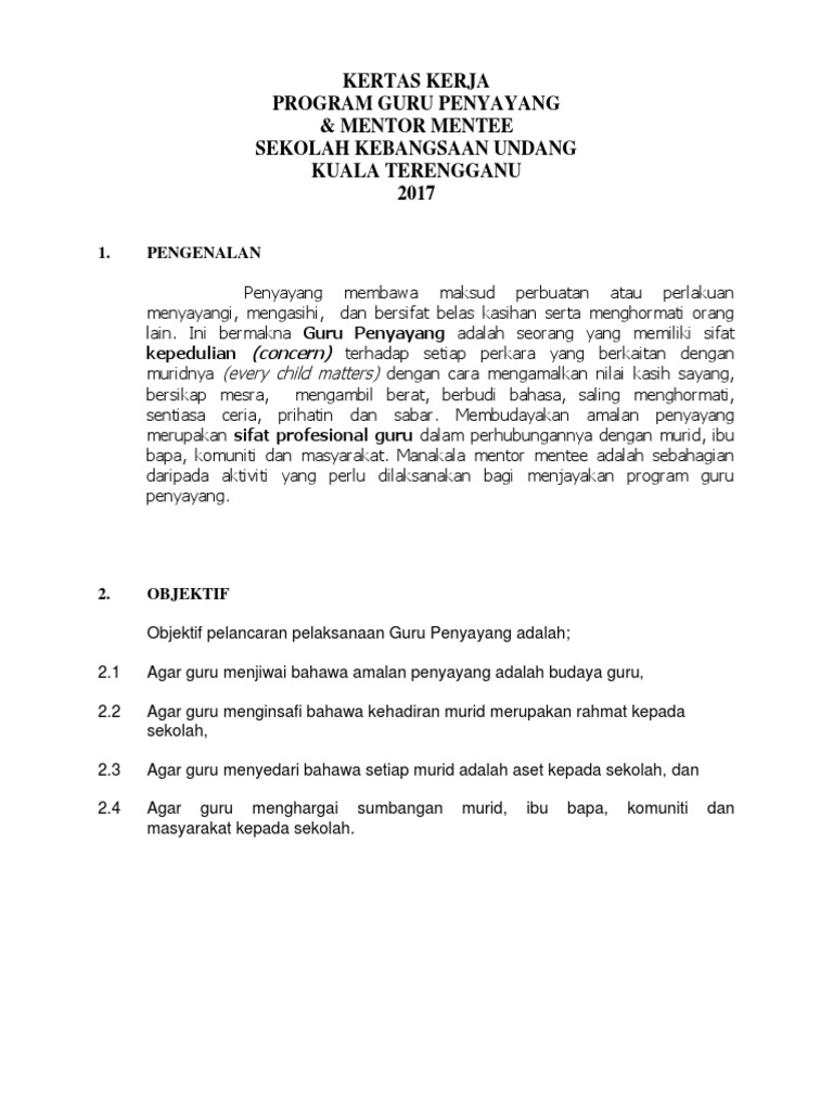 10 PANDUAN PELAKSANAAN PROGRAM MENTOR MENTEE KEMENTERIAN PELAJARAN MALAYSIA. 37 Full PDFs related to this paper. Ini bermakna Guru Penyayang adalah seorang guru yang memiliki sifat kepedulian concern terhadap murid.