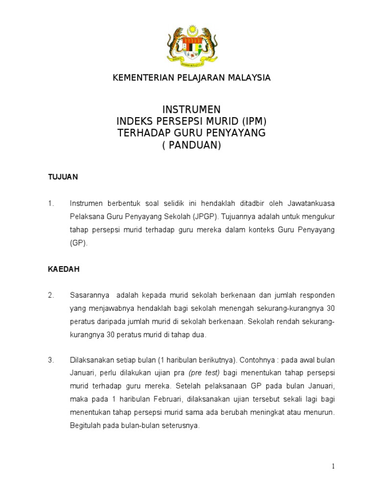 Borang Indeks Persepsi Guru Penyayang Pdf